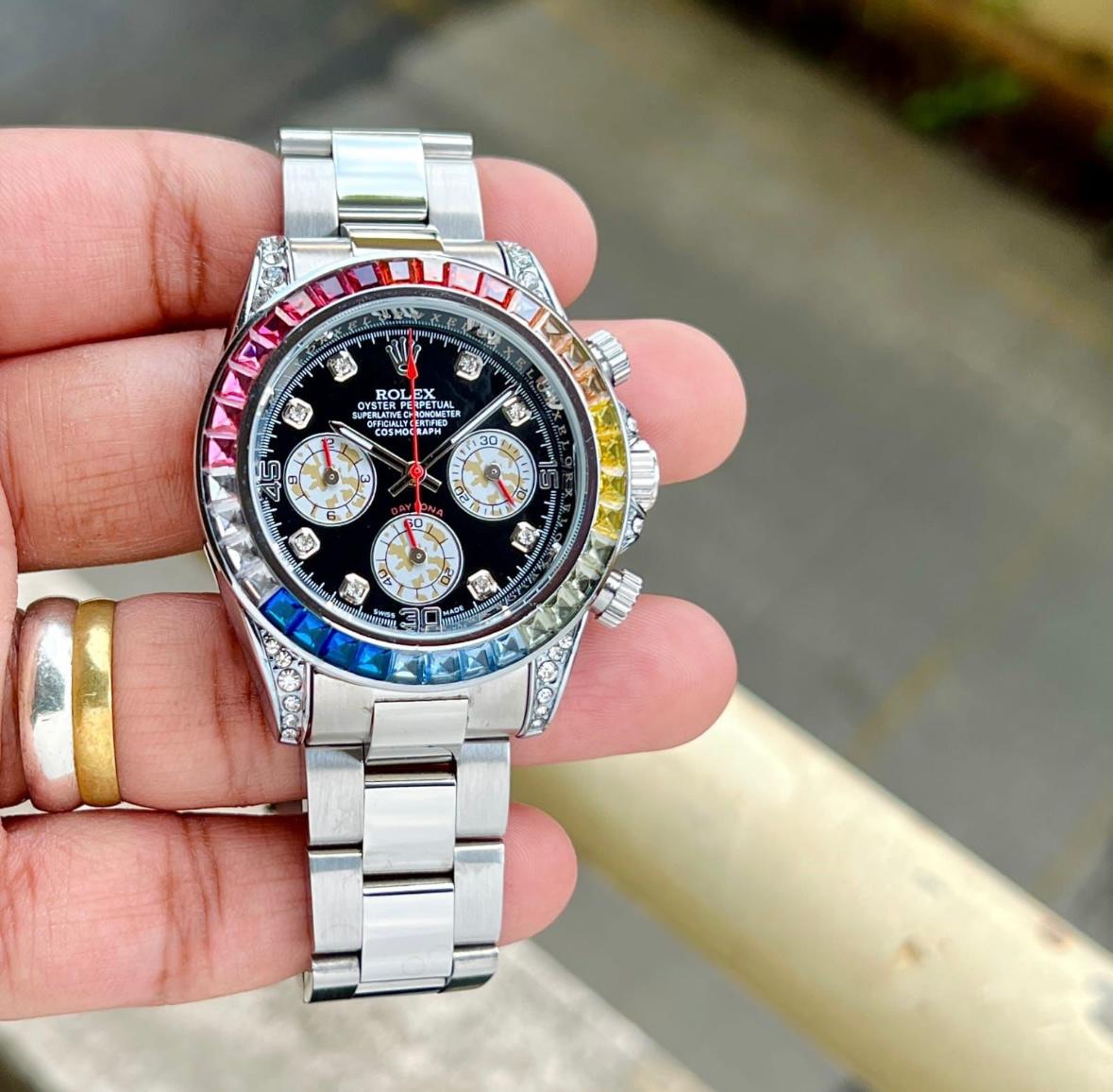 *Rolex watch ⭐ ⭐⭐ *Quality-7a *Gender-Men’s *Bracelet- golden *Movement-Automatic *Case Diameter-42mm *Case Thickness-11mm *Rolex lock🔐 *Glass-Sapphire *Luxury watch style *Original mod