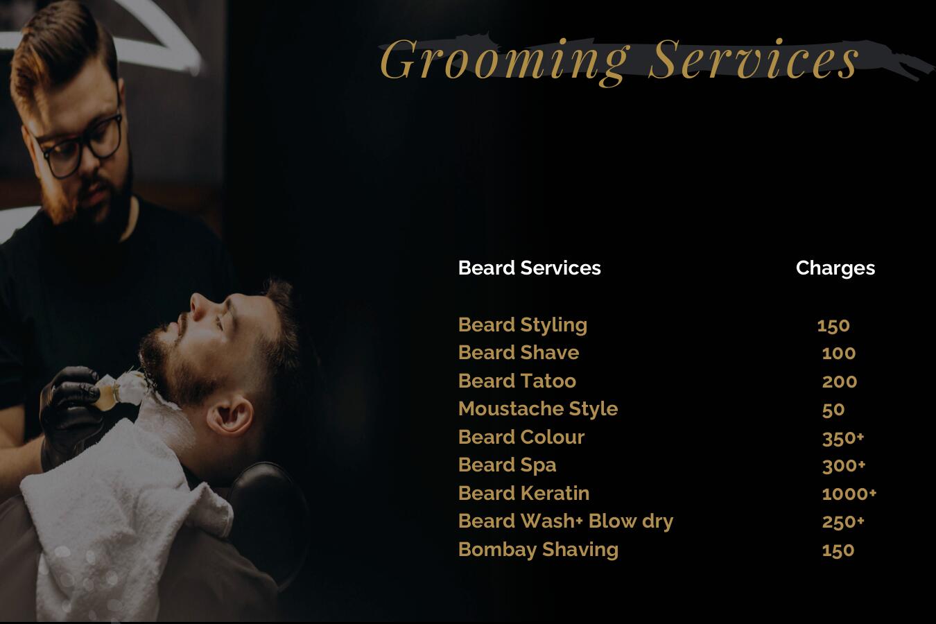 Revamp your beard style with our grooming expertise. Choose from Beard Styling, Shave, Tattoo, Moustache Style, and more. Pamper your beard with Beard Spa, Keratin treatment, or Beard Wash + Blow Dry.