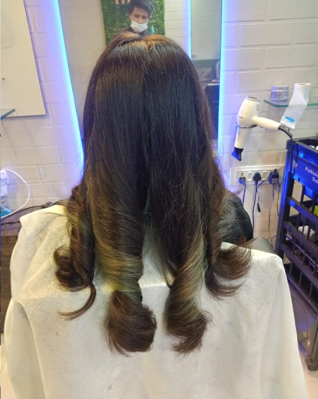Transform your hair with our Blowdry options - Blast, Straight, Spiral, Out/In Turn. We also offer Hair Shimmer, Ironing, Tongs, Curls, and Crimping services for different hair lengths. Elevate your style today