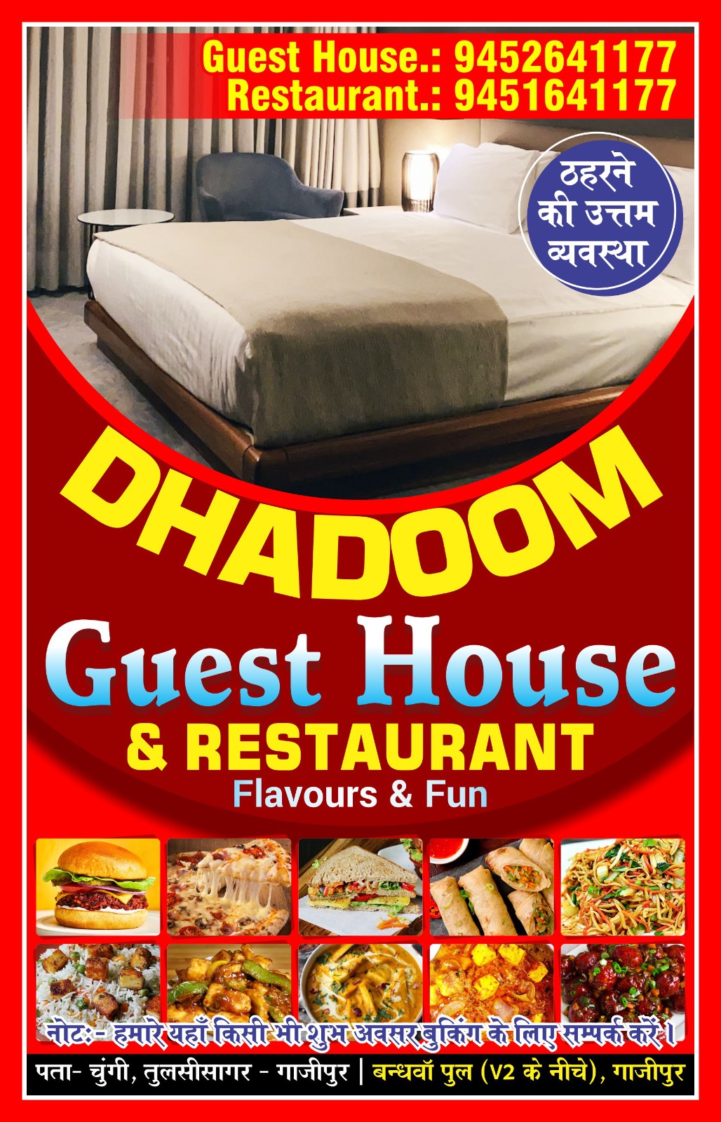 Welcome to our guest house & restaurant! We are located in Ghazipur and have been serving the community since 2022. Our services include a guest house, restaurant, and catering. We pride ourselves on providing the best possible service and experience to our guests. Thanks for choosing us!