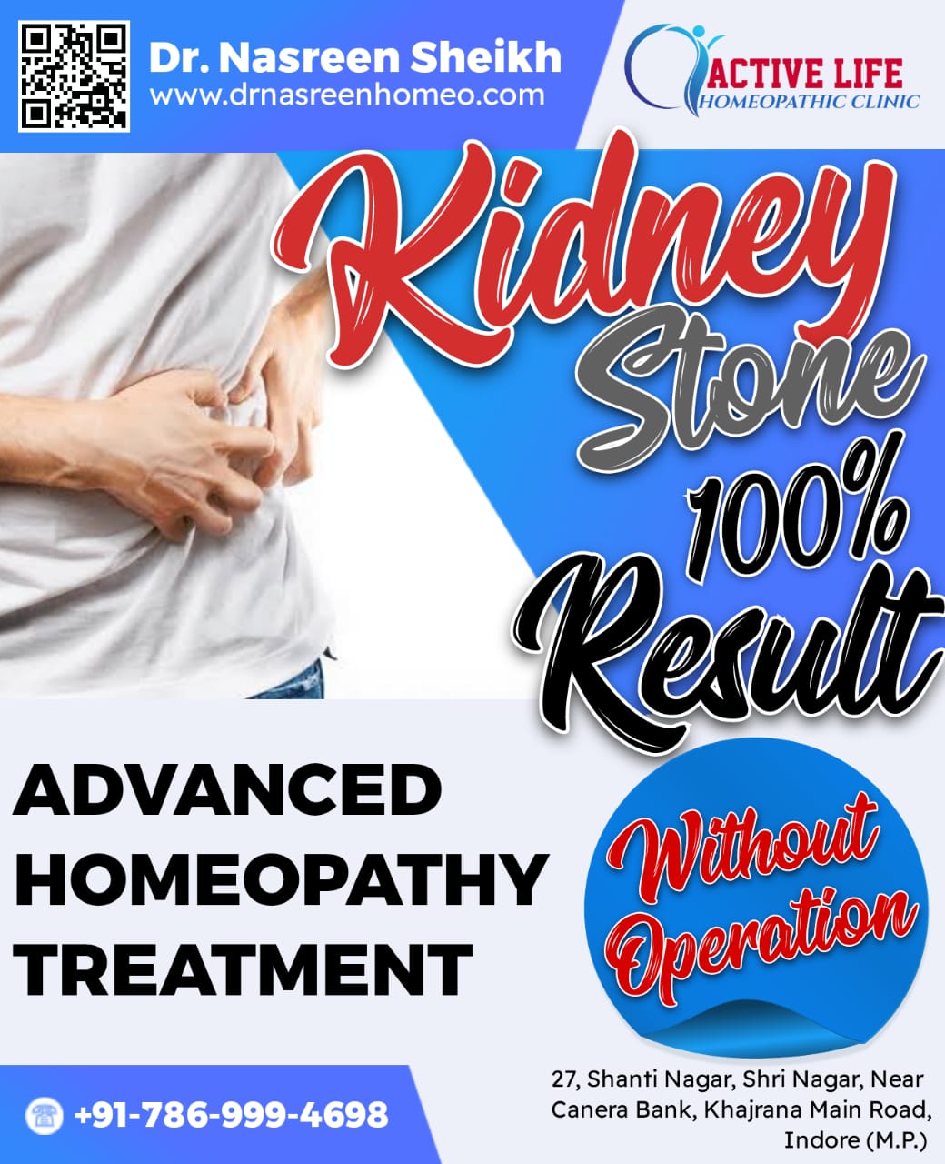 Dr. Nasreen Sheikh's Homoeopathic Clinic in Palasia, Indore excels in kidney stone treatments, offering specialized care through both medicinal and surgical interventions for optimal relief.