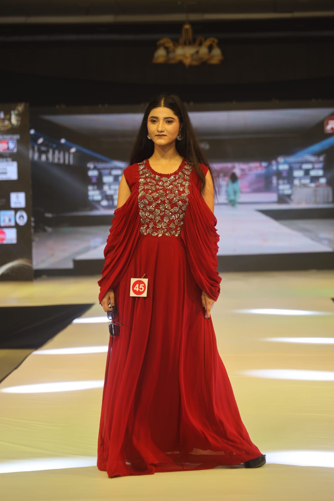 Explore our Women's Georgette Butterfly Pattern Gown with handcrafted details. Elevate your style with grace and sophistication