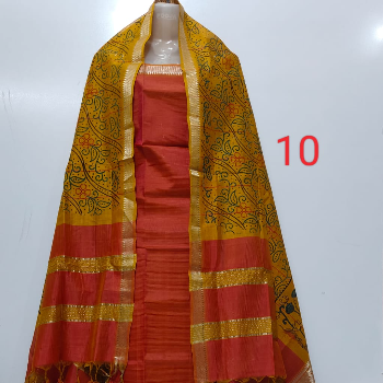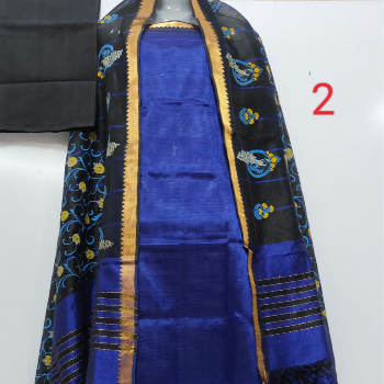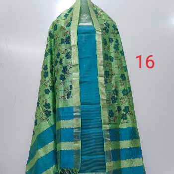 Name : Mangalagiri Pattu Dress Material with Nizam Border dress materi Top Fabric : Silk Blend + Top Length: 2.5 Meters Bottom Fabric : Cotton + Bottom Length: 2.4 Meters Dupatta Fabric : Silk Blend + Dupatta Length: 2.5 Meters Lining Fabric : No Lining Type : Un Stitched Pattern : Solid