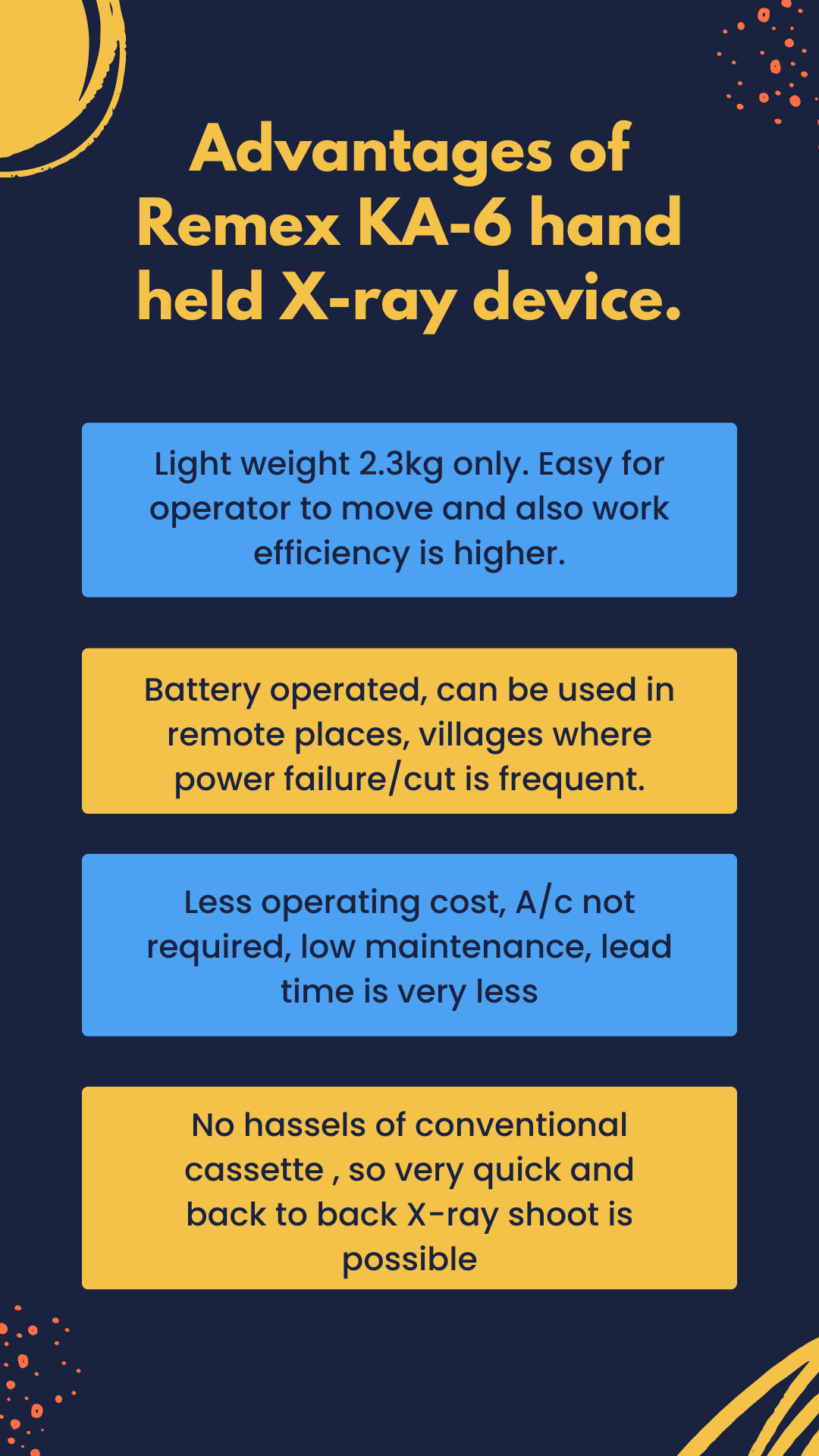 Uncover the practical benefits of the Remex KA-6 Handheld X-ray Device, approved by AERB and designed for portability, low radiation dose, and seamless integration with hospital systems.