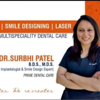 Dr. Surbhi Patel is a distinguished dental professional and serves as the Chief Dentist at Prime Dental Care. With a Master's degree in Dental Surgery[maxillofacial prosthodontist and oral implant ologist, she brings a wealth of expertise and experience to her practice.
