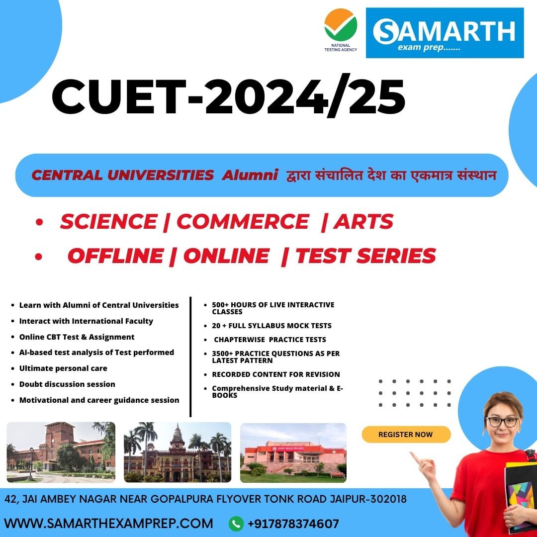 Established in 2022, Samarth Exam Prep App is a coaching class that provides exam preparation for Cuet, we are based at Gopalpura Jaipur and offers online and offline both classes. Our goal is to help our students succeed in their exams and reach their academic goals.