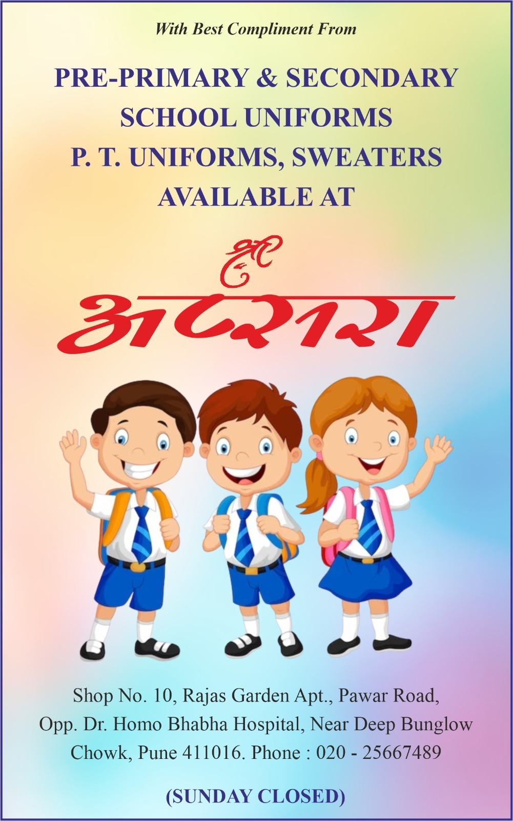 SHOP NO 10, Rajas Garden, opp. DR.HOMI BHABHA HOSPITAL, Model Colony, APTT, Pune, Maharashtra 411016, India