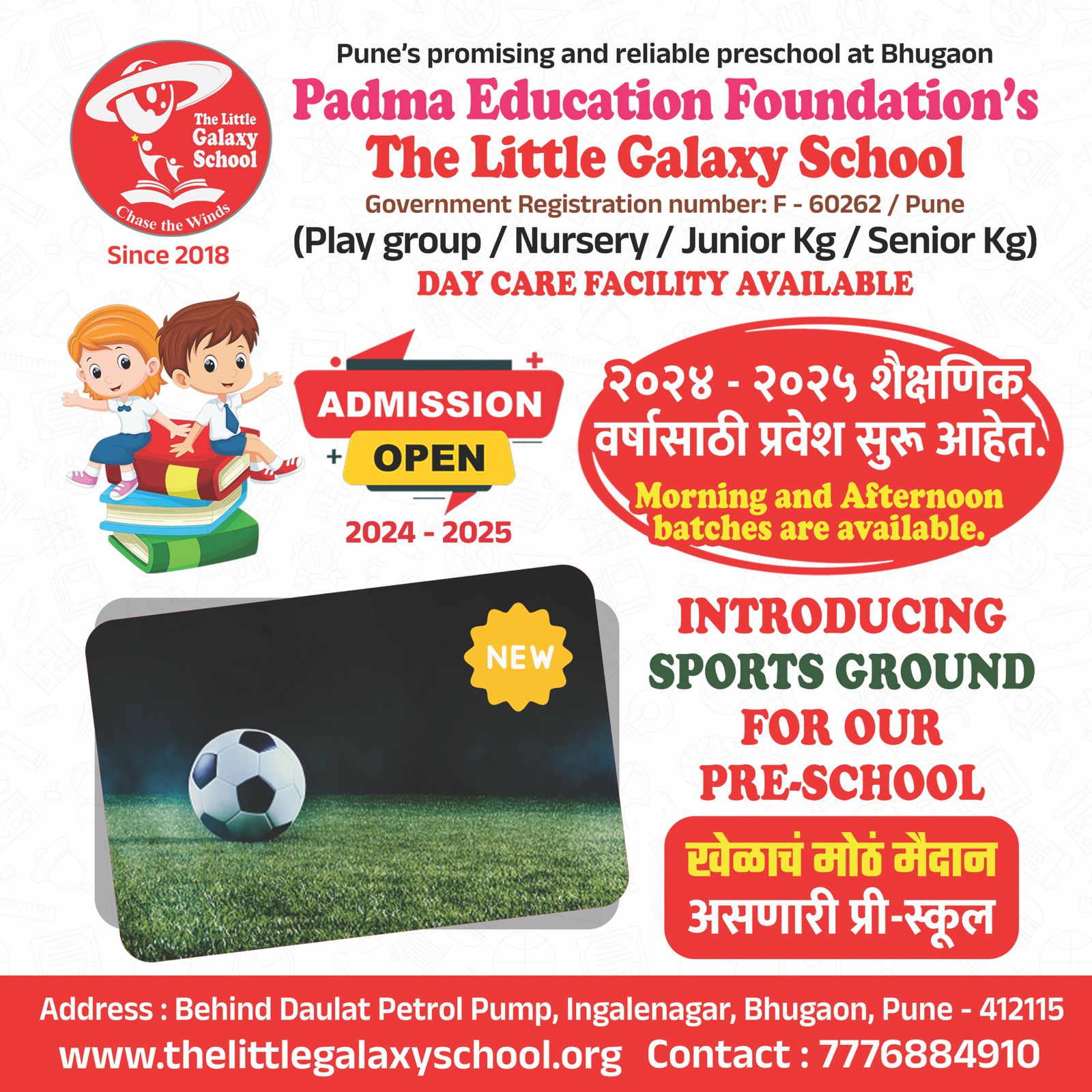 The Little Galaxy School in Bhugaon, Bavdhan, Pune, provides exceptional Junior and Senior KG programs for children aged 4 to 6 years. Our NEP-based curriculum integrates phonics, numeracy, and comprehensive skill development to prepare your child for primary school. In a nurturing and stimulating environment, children receive individualized attention from experienced educators. The school emphasizes critical thinking, creativity, and social skills to lay a strong educational foundation. Enroll your child in our Junior and Senior KG programs for a successful and enriching early education experience.