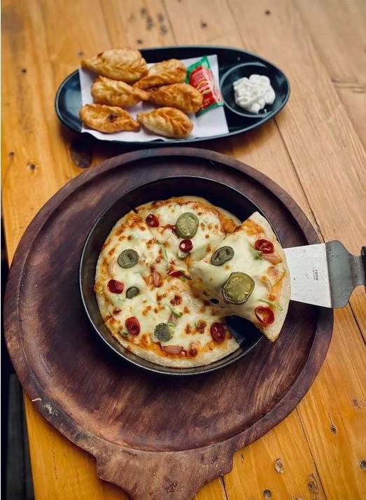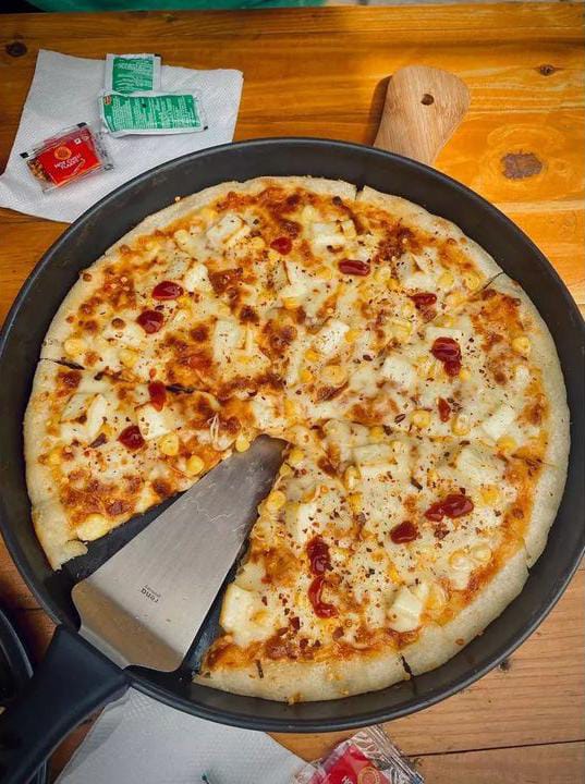 Savor our delicious single-topped pizzas at The Lone Wolf Cafe in Pune. Choose from Margherita, Cheesy Corn, Cheesy Onion, or Cheesy Olives toppings, available in 7", 10", and 13" sizes.