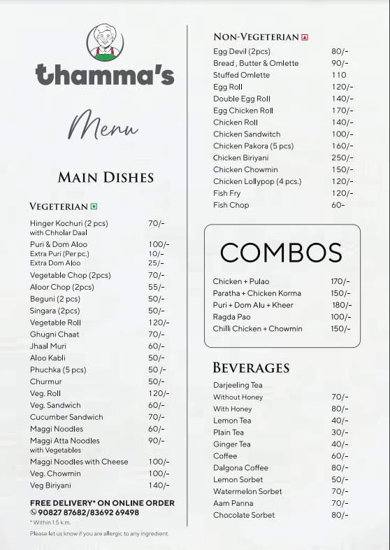 Welcome to Thamma's, the perfect destination for food lovers! Our cozy cafe offers a wide range of delectable treats including crispy Aalu chop, savory Chicken sandwich, flavorful Hing kachuri, and hearty chholar dal.