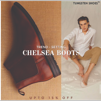 TUNGSTEN THE SHOE CO. Brown Leather Chelsea Boots for Men - Handcrafted Classic Round. Available in both brown and black, these stylish and durable boots are perfect for any occasion. They offer a comfortable fit and timeless appeal, available in various sizes.
